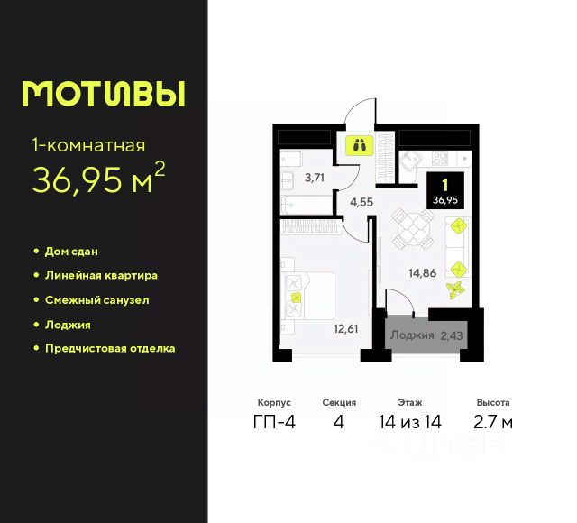 1-комн. квартира с предчистовой отделкой в ЖК "Прео" на 4 этаже. Общая площадь: 33.77 кв.м., жилая: 13.83 кв.м., площадь просторной кухни-столовой: 9.85 кв.м. Все окна выходят на одну сторону. В квартире одна лоджия, один совмещенный санузел. Высота потолков 2.7 м. Дом монолитный, двухподъездный, высотой 17 этажей. Квартира находится во 2-й секции в корпусе 202. На этаже 7 квартир. В подъезде 1 пассажирский и 1 грузовой лифт. На сегодняшний день строительство завершено, дом сдан в 4 квартале 2024 года. Оформление сделки по договору купли-продажи. Преображенский — один из самых привлекательных районов для жизни! Это полностью самостоятельный жилой район с точки зрения инфраструктуры. Преображенский находится между Московским и Червишевским трактами в квартале улиц Закалужская — Вьюжная — Александра Протозанова. Не нужно ждать, когда появится инфраструктура — переезжайте на всё готовое. Вблизи расположены действующие школа и детский сад. В этом году откроется еще один сад, а в следующем году — школа. По соседству с Преображенским запланировано строительство городского парка "Комарово" площадью 38 гектар. За 10 минут можно доехать на автомобиле до крупных ТРЦ: "Лента", "Кристалл", "Леруа Мерлен", "Метро" и "Ашан". С 2018 года в районе открыт Соседский центр — пространство, созданное для формирования добрососедской среды, совместного досуга, общения и реализации соседских инициатив. Здесь проходят встречи соседей, а также сами жители района организовывают мероприятия. Организатором такого события может стать любой желающий. В квартирах выполнена качественная предчистовая отделка. Гладкие стены с финишным выравниванием по маякам. Ровный потолок для установки натяжного потолка. Установлены пятикамерные окна с двойным стеклопакетом (3 стекла). Дизайнерские холлы с видеонаблюдением, безбарьерным и прозрачным входом всегда светло и спокойно. На первом этаже есть просторные колясочные, где все жители могут оставлять свои коляски и велосипеды. В Преображенском есть всё, что нужно для активного отдыха и занятий спортом. Мы сделали большое футбольное поле с безопасным покрытием. Также установили хоккейный корт, который оборудован по всем необходимым стандартам. Во дворах можно делать упражнения на специальных площадках с турниками. Весь район мы обустроили велодорожками, которые связаны в единый маршрут. У нас есть сухие фонтаны, бьющие из земли, деревья, веревки, сетки, скалодром, газон, песок и резинка — осталось просто дать своему ребенку право на свободную игру. По-настоящему хорошие дворы — это те, которые дети предпочитают соцсетям и телевизору. Аккредитация в банках: ПАО "Газпромбанк", ПАО "Банк Уралсиб", "Сбербанк России", ПАО Банк "ВТБ", ОАО "Альфа-Банк" и других. #26tvsV Купить 1-комнатную квартиру в готовой новостройке в округе Калининский в городе Тюмень.