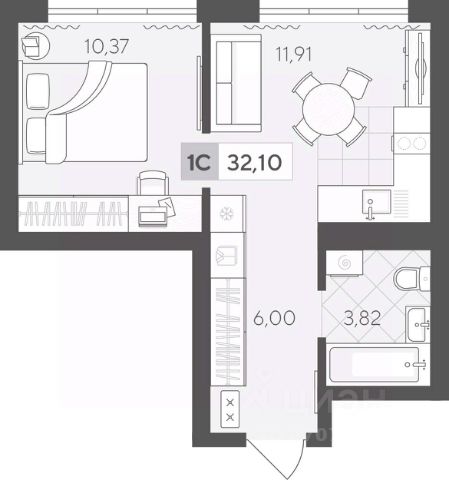 квартира меблирована: установлен кухонный гарнитур с варочной панелью, стол, стулья, стиральная машина, в спальне диван, шкаф. Все необходимое для жизни имеется - можно будет сразу сдавать.