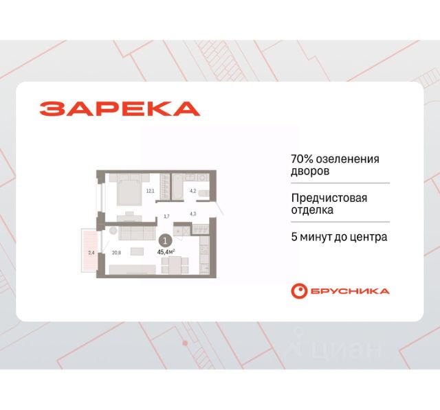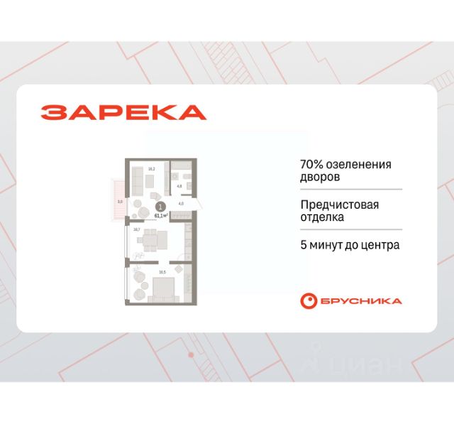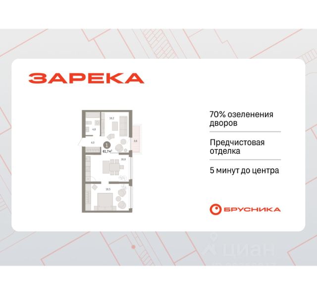 Квартира в счёт первоначального взноса по программе обмена. По всем вопросам обращайтесь в офис продаж, мы вам все подробно расскажем! Однокомнатная квартира от застройщика с предчистовой отделкой в ЖК "Зарека" на 8 этаже. Общая площадь: 57.89 кв.м., жилая: 16.5 кв.м., площадь просторной кухни-гостиной: 28.4 кв.м. Все окна выходят на одну сторону. В квартире одна лоджия, один совмещенный санузел. Высота потолков 2.7 м. Дом монолитный, многоподъездный, переменной этажности, от 5 до 9 этажей. Квартира находится в 1-й секции высотой 8 этажей в корпусе 1. На этаже 8 квартир. В подъезде 1 грузовой лифт. Начало строительства - 3 квартал 2023 года. Окончание строительства - 3 квартал 2026 года. Оформление сделки по договору долевого участия. Квартира с кухней-гостиной и одной спальней в жилом районе "Зарека". Особенности планировки: вид во двор, панорамное остекление, тёплая лоджия, предчистовая отделка. квартиры в нашей базе: Панама01-01-1-1.8.1. Проект На планировочную структуру "Зареки" повлияла близость к автомобильному мосту Челюскинцев. Мы расположили жилые здания так, чтобы они постепенно удалялись от проезжей части. Приём напоминает лесенку: чем сильнее мост возвышается над участком застройки, тем дальше по отношению к нему стоят дома. Этот ступенчатый сдвиг позволил нам сформировать буфер между кварталами и оживлённой магистралью. Мы намерены высадить здесь высокие деревья и создать дополнительную защиту от дорожных шума и пыли. В границах нашего участка мы намерены разместить школу и два встроенных детских сада на 135 и 150 мест. Общественные пространства С севера на юг территорию будет пронизывать пешеходный бульвар. Мы мыслим это общественное пространство как главный центр притяжения. На нём будут сосредоточены основные детские игровые и спортивные зоны, места для встреч и спокойного отдыха. Он также сыграет роль мостика, ведущего к другим нашим проектам — "Европейскому кварталу" и "Дому у озера". Одна из базовых идей мастер-плана касается береговой линии. Сегодня озеленение этой территории носит стихииныи характер, а прямому доступу к Туре препятствует дамба. Мы хотим благоустроить пространства у воды и открыть их для людей. Архитекторы спроектировали систему многоярусных троп и спусков к реке, смотровые площадки и места для активного отдыха и пикников. #2s5CCB Продается 1-комнатная квартира в новостройке с отделкой в микрорайоне Зарека в городе Тюмень.