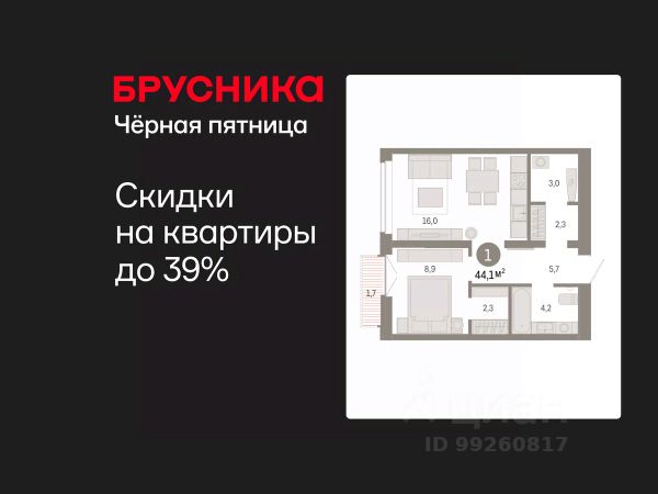 Квартира в рассрочку без процентов от застройщика. Обмен квартиры на новую. Предложение от застройщика. Эксклюзивные ипотечные условия. Дом будет сдан в 4 квартале 2025 года. Квартира в счёт первоначального взноса по программе обмена. Звоните, наши менеджеры вам все расскажут! Продается однокомнатная квартира с предчистовой отделкой в ЖК "Республики 205" на 1 этаже. Общая площадь: 42.91 кв.м., жилая: 13.9 кв.м., площадь просторной кухни-гостиной: 19.6 кв.м. Все окна выходят на одну сторону. В квартире один совмещенный санузел. Высота потолков 2.6 м. Купить квартиру можно с помощью программ покупки от застройщика Брусника: - ипотека по эксклюзивной ставке с помощью в получении положительного кредитного решения через сервис ипотечный брокер; - квартиры в рассрочку без процентов от застройщика Брусника; - обмен квартиры на новую. Получить одобрение ипотеки или рассрочку, а также осуществить обмен квартир можно онлайн. Дом монолитный, многоподъездный, переменной этажности, от 9 до 17 этажей. Квартира находится в 1-й секции высотой 17 этажей в корпусе 1. На этаже 7 квартир. В подъезде 1 пассажирский и 1 грузовой лифт. Начало строительства - 2 квартал 2023 года. Окончание строительства - 4 квартал 2025 года. Оформление сделки по договору долевого участия. Район Проект расположен в границах улиц Пермякова, Энергетиков, Воровского и Республики. До центра города — 10 минут на машине. Рядом — автомобильная развязка на пересечении улиц Пермякова и Республики. В шаговой доступности есть школы, детские сады, поликлиники, крупный торговый центр, автовокзал и несколько скверов. Проект "Республики 205" — это проект комплексного развития территории, уникальный по своему наполнению. Переосмысляя бывшую территорию завода медицинского оборудования, мы создадим новое место силы — микрорайон, насыщенный деловой, развлекательной, рекреационной, игровой, образовательной и медицинской инфраструктурой. До каждого полезного сервиса здесь можно будет дойти за 15 минут. Локальными центрами "Республики 205" будут общественные пространства — скверы, парки, бульвары и площади. В границах нашего участка мы намерены разместить школу, рассчитанную на 1550 учеников, два детских сада на 300 мест и встроенный детский сад на 100 мест. В одном из цехов бывшего завода расположится креативный кластер "Кузница". Он станет площадкой для нескольких институций — галереи, лектория, книжного магазина-библиотеки, кинобара и точек креативного pop-up-ритейла. Пешеходные бульвары внутри района соединят между собой улицу ресторанов, детские и спортивные площадки, событийную площадь и летний кинотеатр. Идентификатор квартиры по базе застройщика: МЕД01-01-1-1. #Z5lOIB