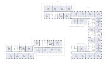 Квартал представлен 4-этажными домами. Архитектура проникнута близостью к природе. Естественные цвета гармонично вписывают дома в существующий ландшафт, поддерживают настроение и позволяют отдохнуть от городской пестроты.