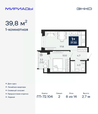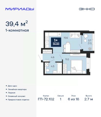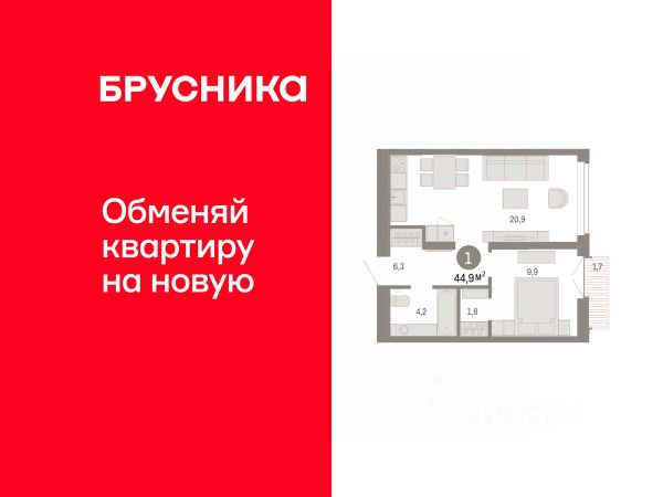 Продается 1-комн. квартира от застройщика с предчистовой отделкой в ЖК "Республики 205" на 9 этаже. Общая площадь: 35.47 кв.м., жилая: 9 кв.м., площадь просторной кухни-гостиной: 16 кв.м. Все окна выходят на одну сторону. В квартире один балкон, один совмещенный санузел. Высота потолков 2.7 м. Купить квартиру можно с помощью программ покупки от застройщика Брусника: - ипотека по эксклюзивной ставке с помощью в получении положительного кредитного решения через сервис ипотечный брокер; - квартиры в рассрочку без процентов от застройщика Брусника; - обмен квартиры на новую. Получить одобрение ипотеки или рассрочку, а также осуществить обмен квартир можно онлайн. Дом монолитный, многоподъездный, переменной этажности, от 7 до 16 этажей. Квартира находится в 1-й секции высотой 9 этажей в корпусе 2. На этаже 10 квартир. В подъезде 1 грузовой лифт. Начало строительства - 1 квартал 2024 года. Окончание строительства - 1 квартал 2026 года. Оформление сделки по договору долевого участия. Район Проект расположен в границах улиц Пермякова, Энергетиков, Воровского и Республики. До центра города — 10 минут на машине. Рядом — автомобильная развязка на пересечении улиц Пермякова и Республики. В шаговой доступности есть школы, детские сады, поликлиники, крупный торговый центр, автовокзал и несколько скверов. Проект "Республики 205" — это проект комплексного развития территории, уникальный по своему наполнению. Переосмысляя бывшую территорию завода медицинского оборудования, мы создадим новое место силы — микрорайон, насыщенный деловой, развлекательной, рекреационной, игровой, образовательной и медицинской инфраструктурой. До каждого полезного сервиса здесь можно будет дойти за 15 минут. Локальными центрами "Республики 205" будут общественные пространства — скверы, парки, бульвары и площади. В границах нашего участка мы намерены разместить школу, рассчитанную на 1550 учеников, два детских сада на 300 мест и встроенный детский сад на 100 мест. В одном из цехов бывшего завода расположится креативный кластер "Кузница". Он станет площадкой для нескольких институций — галереи, лектория, книжного магазина-библиотеки, кинобара и точек креативного pop-up-ритейла. Пешеходные бульвары внутри района соединят между собой улицу ресторанов, детские и спортивные площадки, событийную площадь и летний кинотеатр. Идентификатор квартиры по базе застройщика: РСП-02-1-1. #2svgA2 1-комнатная квартира в новостройке в округе Ленинский в городе Тюмень.