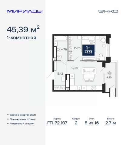 Эксклюзивные ипотечные условия. Квартира в рассрочку без процентов от застройщика. Дом будет сдан в 4 квартале 2025 года. По всем вопросам обращайтесь в офис продаж, мы вам все подробно расскажем. Продается 1-комн. квартира от застройщика с предчистовой отделкой в ЖК "Республики 205" на 1 этаже. Общая площадь: 75.55 кв.м., жилая: 12.7 кв.м., площадь просторной кухни-гостиной: 29.8 кв.м. Все окна выходят на одну сторону. В квартире один балкон, один совмещенный санузел. Терраса размером 17.1 кв.м. представляет собой роскошную зону отдыха, где вы на свой вкус можете создать атмосферу комфорта и уюта. Высота потолков 2.6 м. В квартире предусмотрены: - окна в пол наполняют квартиру естественным светом, который, в свою очередь, положительно влияет на ваше самочувствие и настроение. Увеличенная площадь остекления позволяет снизить необходимость в использовании ламп и люстр; - в каждой квартире предусмотрена телеметрия; - установлены сейф-двери; - выполнена гидроизоляция мокрых зон. Купить квартиру можно с помощью программ покупки от застройщика Брусника: - ипотека по эксклюзивной ставке с помощью в получении положительного кредитного решения через сервис ипотечный брокер; - квартиры в рассрочку без процентов от застройщика Брусника; - обмен квартиры на новую. Получить одобрение ипотеки или рассрочку, а также осуществить обмен квартир можно онлайн. Дом монолитный, многоподъездный, переменной этажности, от 9 до 17 этажей. Квартира находится в 1-й секции высотой 17 этажей в корпусе 1. На этаже 7 квартир. В подъезде 1 пассажирский и 1 грузовой лифт. Начало строительства - 2 квартал 2023 года. В настоящее время строительство завершено, дом сдан в 4 квартале 2025 года. Оформление сделки по договору купли-продажи. Район Проект расположен в границах улиц Пермякова, Энергетиков, Воровского и Республики. До центра города — 10 минут на машине. Рядом — автомобильная развязка на пересечении улиц Пермякова и Республики. В шаговой доступности есть школы, детские сады, поликлиники, крупный торговый центр, автовокзал и несколько скверов. Проект "Республики 205" — это проект комплексного развития территории, уникальный по своему наполнению. Переосмысляя бывшую территорию завода медицинского оборудования, мы создадим новое место силы — микрорайон, насыщенный деловой, развлекательной, рекреационной, игровой, образовательной и медицинской инфраструктурой. До каждого полезного сервиса здесь можно будет дойти за 15 минут. Локальными центрами "Республики 205" будут общественные пространства — скверы, парки, бульвары и площади. В границах нашего участка мы намерены разместить школу, рассчитанную на 1550 учеников, два детских сада на 300 мест и встроенный детский сад на 100 мест. В одном из цехов бывшего завода расположится креативный кластер "Кузница". Он станет площадкой для нескольких институций — галереи, лектория, книжного магазина-библиотеки, кинобара и точек креативного pop-up-ритейла. Пешеходные бульвары внутри района соединят между собой ули 1-комнатная квартира в новостройке в округе Ленинский в городе Тюмень.