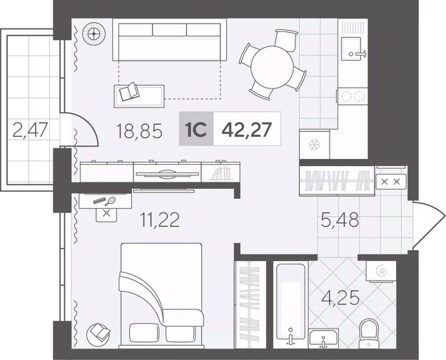 Просторная однокомнатная квартира с предчистовой отделкой в ЖК "Прео" на 17 этаже. Общая площадь: 41.23 кв.м., жилая: 17.67 кв.м., площадь просторной кухни-столовой: 12.3 кв.м. Все окна выходят на одну сторону. В квартире один балкон, один совмещенный санузел. Высота потолков 2.7 м.
