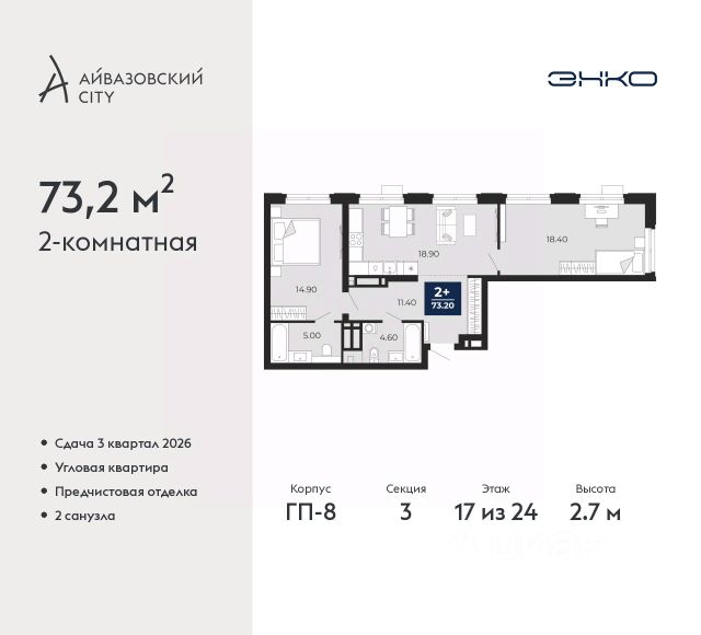 Дом монолитный, черырехподъездный, переменной этажности, от 7 до 9 этажей. Квартира находится в 1-й секции высотой 7 этажей в корпусе ГП-5. На этаже 9 квартир. В подъезде 1 грузовой лифт. Окончание строительства - 4 квартал 2025 года. Оформление сделки по договору долевого участия.