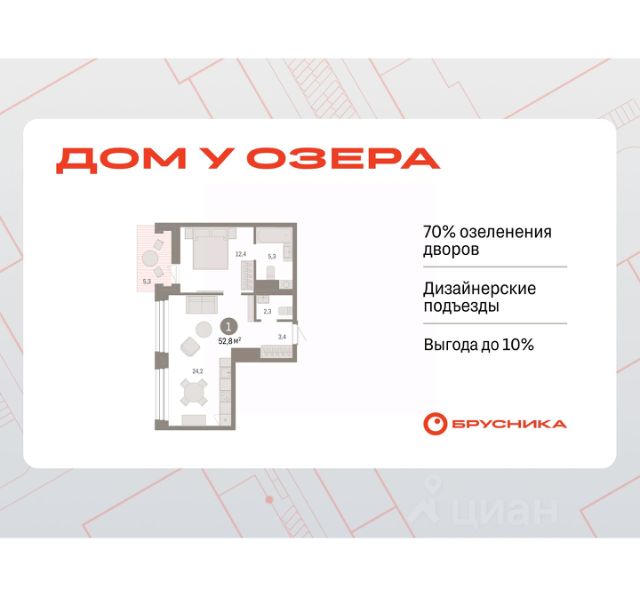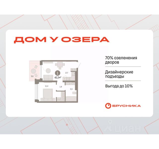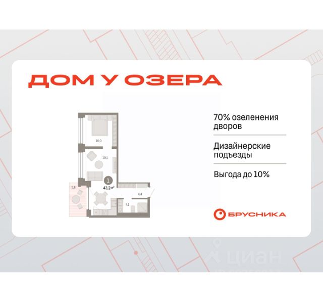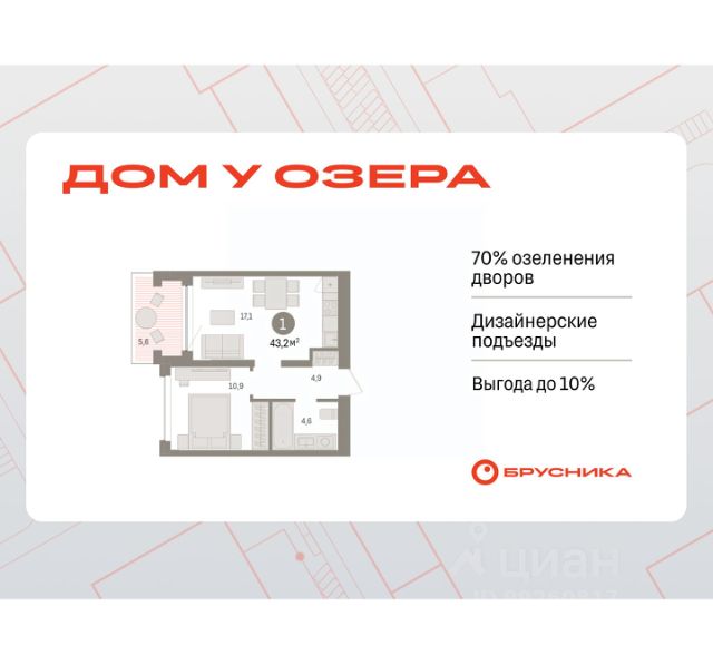 Квартира в счёт первоначального взноса по программе обмена. Звоните, мы вам все подробно расскажем! Продается 1-комн. квартира с предчистовой отделкой в ЖК "Дом у озера" на 2 этаже. Общая площадь: 43.76 кв.м., жилая: 11.2 кв.м., площадь просторной кухни-гостиной: 17.4 кв.м. Все окна выходят на одну сторону. В квартире одна лоджия, один совмещенный санузел. Высота потолков 2.7 м. Дом монолитный, многоподъездный, переменной этажности, от 2 до 8 этажей. Квартира находится в 5-й секции высотой 7 этажей в корпусе 3. На этаже 6 квартир. В подъезде 1 грузовой лифт. Окончание строительства - 2 квартал 2027 года. Оформление сделки по договору долевого участия. Квартира с кухней-гостиной и одной спальней в Доме у озера. Особенности планировки: вид во двор, предчистовая отделка, балкон. квартиры в нашей базе: ДМУ03-Ж5.2.5. "Дом у озера" является продолжением "Европейского квартала". Он расположен в центре заречного района города. В 2030 году здесь появится квартал, состоящий из урбан-вилл, таунхаусов, секционных домов и башни. Вокруг уже сформирована необходимая инфраструктура: детские сады, школы, спортивный комплекс, продуктовые магазины, аптеки, кофейни, рестораны и салоны красоты. Путь до центра города занимает 7 минут на машине. Озеро Тихое — ценный рекреационный ресурс. Брусника вернула ему прежнее значение и сделала новой точкой притяжения для жителей микрорайона. Ключевым элементом концепции благоустройства стала вода. В каждой части квартала архитекторы нашли для нее свою форму. Вдоль пешеходных улиц разместили искусственные ручьи, на центральной площади — фонтан и дождевые сады. Основная точка притяжения жителей — озеро и выходящий на его сторону променад. Здесь мы организуем смотровые площадки и расположим летние террасы кафе и ресторанов. Тесную связь застройки с ландшафтом обеспечивает многоуровневое озеленение. Буфер из деревьев и кустарников по периметру квартала превращается в естественный ветрозащитный экран. Такое решение позволяет создать на территории "Дома у озера" комфортный микроклимат. Подъезды "Дома у озера" с прозрачными входными группами и большими лифтами. Для мест общего пользования архитекторы разработали новую интерьерную коллекцию, вдохновленную эклектичными восточными мотивами. В отделке сочетаются коричневый, желтый и белый цвета, повторяющие колористические решения фасадов. Декоративные перегородки, установленные в лобби, напоминают машрабию — элемент арабской архитектуры в виде узорной решетки. За счет мягкой мебели, многоуровневого освещения теплых оттенков и предметов декора (например, зеркал и картин) холлы воспринимаются как продолжение квартиры. #zSD81m