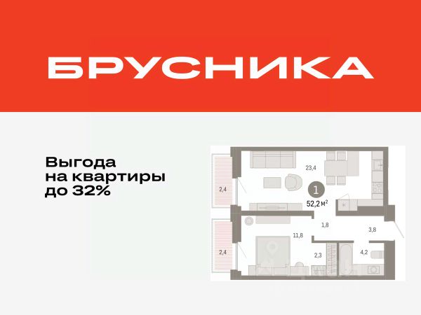 Квартира в счёт первоначального взноса по программе обмена. По всем вопросам звоните в офис продаж, мы вам все подробно расскажем! Однокомнатная квартира от застройщика с предчистовой отделкой в ЖК "Зарека" на 7 этаже. Общая площадь: 59.76 кв.м., жилая: 14.2 кв.м., площадь просторной кухни-гостиной: 24.2 кв.м. Все окна выходят на одну сторону. В квартире один балкон, один совмещенный санузел. Высота потолков 2.7 м. Дом монолитный, многоподъездный, переменной этажности, от 6 до 16 этажей. Квартира находится в 1-й секции высотой 16 этажей в корпусе 5-2. На этаже 8 квартир. В подъезде 1 пассажирский и 1 грузовой лифт. Окончание строительства - 4 квартал 2026 года. Оформление сделки по договору долевого участия. Квартира с кухней-гостиной и одной спальней в жилом районе "Зарека". Особенности планировки: предчистовая отделка, постирочная, балкон. квартиры в нашей базе: ЗРК05.2-Ж1.7.3. Проект На планировочную структуру "Зареки" повлияла близость к автомобильному мосту Челюскинцев. Мы расположили жилые здания так, чтобы они постепенно удалялись от проезжей части. Приём напоминает лесенку: чем сильнее мост возвышается над участком застройки, тем дальше по отношению к нему стоят дома. Этот ступенчатый сдвиг позволил нам сформировать буфер между кварталами и оживлённой магистралью. Мы намерены высадить здесь высокие деревья и создать дополнительную защиту от дорожных шума и пыли. В границах нашего участка мы намерены разместить школу и два встроенных детских сада на 135 и 150 мест. Общественные пространства С севера на юг территорию будет пронизывать пешеходный бульвар. Мы мыслим это общественное пространство как главный центр притяжения. На нём будут сосредоточены основные детские игровые и спортивные зоны, места для встреч и спокойного отдыха. Он также сыграет роль мостика, ведущего к другим нашим проектам — "Европейскому кварталу" и "Дому у озера". Одна из базовых идей мастер-плана касается береговой линии. Сегодня озеленение этой территории носит стихииныи характер, а прямому доступу к Туре препятствует дамба. Мы хотим благоустроить пространства у воды и открыть их для людей. Архитекторы спроектировали систему многоярусных троп и спусков к реке, смотровые площадки и места для активного отдыха и пикников. #zSScmA