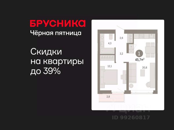 Квартира в счёт первоначального взноса по программе обмена. Звоните, мы вам все подробно расскажем! Просторная 1-комн. квартира с предчистовой отделкой в ЖК "Республики 205" на 8 этаже. Общая площадь: 45.71 кв.м., жилая: 12.1 кв.м., площадь просторной кухни-гостиной: 20.8 кв.м. Все окна выходят на одну сторону. В квартире один балкон, один совмещенный санузел. Высота потолков 2.7 м. Купить квартиру можно с помощью программ покупки от застройщика Брусника: - ипотека по эксклюзивной ставке с помощью в получении положительного кредитного решения через сервис ипотечный брокер; - квартиры в рассрочку без процентов от застройщика Брусника; - обмен квартиры на новую. Получить одобрение ипотеки или рассрочку, а также осуществить обмен квартир можно онлайн. Дом монолитный, многоподъездный, переменной этажности, от 7 до 25 этажей. Квартира находится в 7-й секции высотой 9 этажей в корпусе 3-1. На этаже 7 квартир. В подъезде 1 пассажирский и 1 грузовой лифт. Окончание строительства - 1 квартал 2027 года. Оформление сделки по договору долевого участия. Район Проект расположен в границах улиц Пермякова, Энергетиков, Воровского и Республики. До центра города — 10 минут на машине. Рядом — автомобильная развязка на пересечении улиц Пермякова и Республики. В шаговой доступности есть школы, детские сады, поликлиники, крупный торговый центр, автовокзал и несколько скверов. Проект "Республики 205" — это проект комплексного развития территории, уникальный по своему наполнению. Переосмысляя бывшую территорию завода медицинского оборудования, мы создадим новое место силы — микрорайон, насыщенный деловой, развлекательной, рекреационной, игровой, образовательной и медицинской инфраструктурой. До каждого полезного сервиса здесь можно будет дойти за 15 минут. Локальными центрами "Республики 205" будут общественные пространства — скверы, парки, бульвары и площади. В границах нашего участка мы намерены разместить школу, рассчитанную на 1550 учеников, два детских сада на 300 мест и встроенный детский сад на 100 мест. В одном из цехов бывшего завода расположится креативный кластер "Кузница". Он станет площадкой для нескольких институций — галереи, лектория, книжного магазина-библиотеки, кинобара и точек креативного pop-up-ритейла. Пешеходные бульвары внутри района соединят между собой улицу ресторанов, детские и спортивные площадки, событийную площадь и летний кинотеатр. Идентификатор квартиры по базе застройщика: РСП03. #Z5C8E6
