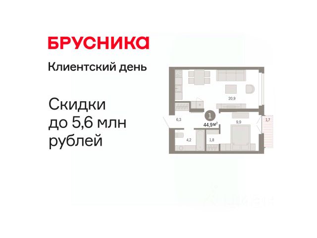 Однокомнатная квартира от застройщика с предчистовой отделкой в ЖК "Республики 205" на 7 этаже. Общая площадь: 44.87 кв.м., жилая: 9.9 кв.м., площадь просторной кухни-гостиной: 20.9 кв.м. Все окна выходят на одну сторону. В квартире один балкон, один совмещенный санузел. Высота потолков 2.7 м. Купить квартиру можно с помощью программ покупки от застройщика Брусника: - ипотека по эксклюзивной ставке с помощью в получении положительного кредитного решения через сервис ипотечный брокер; - квартиры в рассрочку без процентов от застройщика Брусника; - обмен квартиры на новую. Получить одобрение ипотеки или рассрочку, а также осуществить обмен квартир можно онлайн. Дом монолитный, многоподъездный, переменной этажности, от 7 до 16 этажей. Квартира находится в 5-й секции высотой 7 этажей в корпусе 2. На этаже 7 квартир. В подъезде 1 грузовой лифт. Начало строительства - 1 квартал 2024 года. Окончание строительства - 1 квартал 2026 года. Оформление сделки по договору долевого участия. Район Проект расположен в границах улиц Пермякова, Энергетиков, Воровского и Республики. До центра города — 10 минут на машине. Рядом — автомобильная развязка на пересечении улиц Пермякова и Республики. В шаговой доступности есть школы, детские сады, поликлиники, крупный торговый центр, автовокзал и несколько скверов. Проект "Республики 205" — это проект комплексного развития территории, уникальный по своему наполнению. Переосмысляя бывшую территорию завода медицинского оборудования, мы создадим новое место силы — микрорайон, насыщенный деловой, развлекательной, рекреационной, игровой, образовательной и медицинской инфраструктурой. До каждого полезного сервиса здесь можно будет дойти за 15 минут. Локальными центрами "Республики 205" будут общественные пространства — скверы, парки, бульвары и площади. В границах нашего участка мы намерены разместить школу, рассчитанную на 1550 учеников, два детских сада на 300 мест и встроенный детский сад на 100 мест. В одном из цехов бывшего завода расположится креативный кластер "Кузница". Он станет площадкой для нескольких институций — галереи, лектория, книжного магазина-библиотеки, кинобара и точек креативного pop-up-ритейла. Пешеходные бульвары внутри района соединят между собой улицу ресторанов, детские и спортивные площадки, событийную площадь и летний кинотеатр. Идентификатор квартиры по базе застройщика: РСП-02-5-5. #ZWfE29 1-комнатная квартира с обменом в Тюмени.