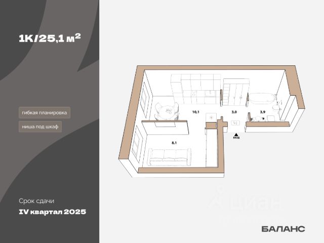 Квартира в рассрочку без процентов от застройщика. Эксклюзивные ипотечные условия. Дом будет сдан в 4 квартале 2025 года. Звоните, наши менеджеры вам все расскажут. Однокомнатная квартира с предчистовой отделкой в ЖК "Республики 205" на 6 этаже. Общая площадь: 36.38 кв.м. Высота потолков 2.6 м. Купить квартиру можно с помощью программ покупки от застройщика Брусника: - ипотека по эксклюзивной ставке с помощью в получении положительного кредитного решения через сервис ипотечный брокер; - квартиры в рассрочку без процентов от застройщика Брусника; - обмен квартиры на новую. Получить одобрение ипотеки или рассрочку, а также осуществить обмен квартир можно онлайн. Дом монолитный, многоподъездный, переменной этажности, от 9 до 17 этажей. Квартира находится в 9-й секции высотой 9 этажей в корпусе 1. На этаже 8 квартир. В подъезде 1 грузовой лифт. Начало строительства - 2 квартал 2023 года. На сегодняшний день строительство окончено, дом сдан в 4 квартале 2025 года. Оформление сделки по договору купли-продажи. Район Проект расположен в границах улиц Пермякова, Энергетиков, Воровского и Республики. До центра города — 10 минут на машине. Рядом — автомобильная развязка на пересечении улиц Пермякова и Республики. В шаговой доступности есть школы, детские сады, поликлиники, крупный торговый центр, автовокзал и несколько скверов. Проект "Республики 205" — это проект комплексного развития территории, уникальный по своему наполнению. Переосмысляя бывшую территорию завода медицинского оборудования, мы создадим новое место силы — микрорайон, насыщенный деловой, развлекательной, рекреационной, игровой, образовательной и медицинской инфраструктурой. До каждого полезного сервиса здесь можно будет дойти за 15 минут. Локальными центрами "Республики 205" будут общественные пространства — скверы, парки, бульвары и площади. В границах нашего участка мы намерены разместить школу, рассчитанную на 1550 учеников, два детских сада на 300 мест и встроенный детский сад на 100 мест. В одном из цехов бывшего завода расположится креативный кластер "Кузница". Он станет площадкой для нескольких институций — галереи, лектория, книжного магазина-библиотеки, кинобара и точек креативного pop-up-ритейла. Пешеходные бульвары внутри района соединят между собой улицу ресторанов, детские и спортивные площадки, событийную площадь и летний кинотеатр. Идентификатор квартиры по базе застройщика: МЕД01-01-9-9. #zTI5cu 1-комнатная квартира с обменом в Тюмени.