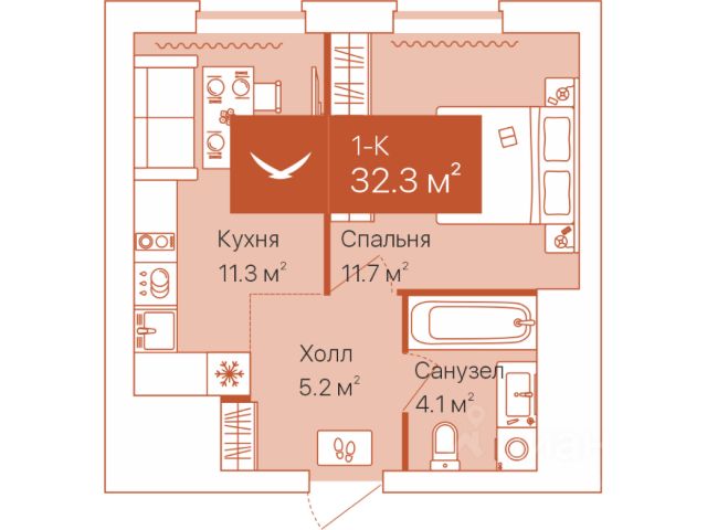 Продаётся квартира площадью 31.81 м2 в жилом комплексе "Смородина". Квартира находится на 2 этаже, жилая площадь квартиры 9.35 м2, площадь просторной кухни — 12.18 м2. Среди особенностей планировки — изолированные комнаты с окнами на одну сторону, 1 совмещённый санузел. Срок сдачи — IV кв. 2026 Жилой комплекс "Смородина" — это: - уютный малоэтажный комплекс в районе ММС - дома высотой 4 этажа - квартиры от студий до семейных вариантов с отапливаемыми лоджиями - экологичные материалы в благоустройстве территории Окружение В 5 минутах ходьбы от проекта — озеро Липовое с песчаным пляжем и лесопарковая зона. Инфраструктура В шаговой доступности есть все для комфортной жизни: школы, детские сады, магазины и аптеки. Рядом с проектом — остановка общественного транспорта. Благоустройство Прямо во дворе — собственные грядки для жителей, где можно выращивать зелень и цветы. Для детей оборудованы детские площадки из натуральных материалов. Лобби Вдохновленные современными тенденциями наши парадные разработаны с акцентом на эстетическую привлекательность и практичность. Использование натуральных материалов и ярких цветовых акцентов создает атмосферу уюта и стиля. Планировки Среди многообразия продуманных планировок есть и уютные студии, и просторные семейные варианты. Во всех квартирах предусмотрены отапливаемые лоджии, где можно устроить зону отдыха или рабочий кабинет. Продам 1-комнатную квартиру от застройщика в Тюменской области.
