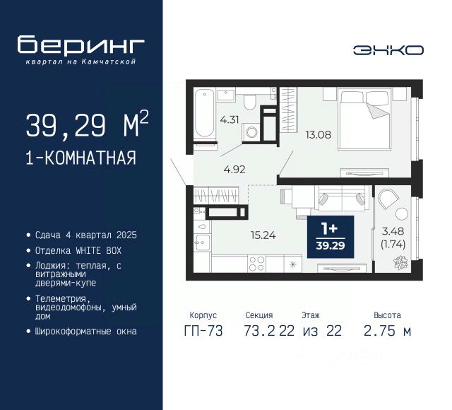 Продаются однокомнатные апартаменты в ЖК "1А Первомайская" на 7 этаже. Апартаменты без отделки, после выдачи ключей можно делать ремонт. Общая площадь: 72.3 кв.м., жилая: 19.9 кв.м., площадь просторной кухни-гостиной: 22.4 кв.м. Все окна выходят на одну сторону. В апартаментах одна лоджия, один совмещенный санузел. Высота потолков 2.7 м.