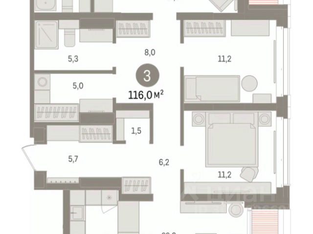 3-комн. апартаменты от застройщика в ЖК "1А Первомайская" на 8 этаже. Апартаменты без отделки, новый собственник может сделать ремонт по своему проекту. Общая площадь: 253.2 кв.м., жилая: 90 кв.м., площадь просторной кухни-гостиной: 30 кв.м. Угловая квартира, очень светлая, естественная вентиляция при открытии окон. В апартаментах один балкон, два совмещенных и один раздельный санузел. Наличие в квартире террасы открывает возможность для обустройства дополнительной площади. Высота потолков 2.7 м.