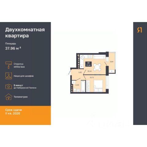 При продаже остаётся вся мебель: прихожая шкаф купе, кухня : кухонный гарнитур,угловой мягкий уголок, обеденный стол, стулья, большой холодильник LG ,эл.плита Gоrеnjе,вытяжка, комната : встроенный шкаф-купе, стенка,раскладывающийся диван. тумбочки,письменный стол,полка для книг и компьютерное кресло. Квартира комфортная окна выходят в тихий, зелёный двор. Район с развитой инфраструктурой, в шаговой доступности, рядом с домом все : остановки, множество магазинов, торговых центров, детские сады, школа, медицинские учреждения, ТИУ и т.д...