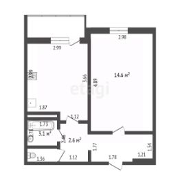 Однокомнатная квартира от застройщика с предчистовой отделкой в ЖК "Республики 205" на 6 этаже. Общая площадь: 36.38 кв.м., жилая: 10.7 кв.м., площадь просторной кухни-гостиной: 14.4 кв.м. Все окна выходят на одну сторону. В квартире один балкон, один совмещенный санузел. Высота потолков 2.6 м.