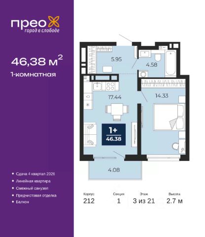 Квартира в рассрочку без процентов от застройщика. Эксклюзивные ипотечные условия. Дом будет сдан в 4 квартале 2025 года. Информация по телефону, наши менеджеры вам все расскажут. Продается однокомнатная квартира от застройщика с предчистовой отделкой в ЖК "Республики 205" на 1 этаже. Общая площадь: 75.55 кв.м., жилая: 12.7 кв.м., площадь просторной кухни-гостиной: 29.8 кв.м. Все окна выходят на одну сторону. В квартире один балкон, один совмещенный санузел. Терраса площадью 17.1 кв.м. представляет собой роскошную зону отдыха, где вы на свой вкус можете создать атмосферу комфорта и уюта. Высота потолков 2.6 м. В квартире предусмотрены: - окна в пол наполняют квартиру естественным светом, который, в свою очередь, положительно влияет на ваше самочувствие и настроение. Увеличенная площадь остекления позволяет снизить необходимость в использовании ламп и люстр; - в каждой квартире предусмотрена телеметрия; - установлены сейф-двери; - выполнена гидроизоляция мокрых зон. Купить квартиру можно с помощью программ покупки от застройщика Брусника: - ипотека по эксклюзивной ставке с помощью в получении положительного кредитного решения через сервис ипотечный брокер; - квартиры в рассрочку без процентов от застройщика Брусника; - обмен квартиры на новую. Получить одобрение ипотеки или рассрочку, а также осуществить обмен квартир можно онлайн. Дом монолитный, многоподъездный, переменной этажности, от 9 до 17 этажей. Квартира находится в 1-й секции высотой 17 этажей в корпусе 1. На этаже 7 квартир. В подъезде 1 пассажирский и 1 грузовой лифт. Начало строительства - 2 квартал 2023 года. На сегодняшний день строительство завершено, дом сдан в 4 квартале 2025 года. Оформление сделки по договору купли-продажи. Район Проект расположен в границах улиц Пермякова, Энергетиков, Воровского и Республики. До центра города — 10 минут на машине. Рядом — автомобильная развязка на пересечении улиц Пермякова и Республики. В шаговой доступности есть школы, детские сады, поликлиники, крупный торговый центр, автовокзал и несколько скверов. Проект "Республики 205" — это проект комплексного развития территории, уникальный по своему наполнению. Переосмысляя бывшую территорию завода медицинского оборудования, мы создадим новое место силы — микрорайон, насыщенный деловой, развлекательной, рекреационной, игровой, образовательной и медицинской инфраструктурой. До каждого полезного сервиса здесь можно будет дойти за 15 минут. Локальными центрами "Республики 205" будут общественные пространства — скверы, парки, бульвары и площади. В границах нашего участка мы намерены разместить школу, рассчитанную на 1550 учеников, два детских сада на 300 мест и встроенный детский сад на 100 мест. В одном из цехов бывшего завода расположится креативный кластер "Кузница". Он станет площадкой для нескольких институций — галереи, лектория, книжного магазина-библиотеки, кинобара и точек креативного pop-up-ритейла. Пешеходные бульвары внутри района соединят между собой улицу рестор Продам 1-комнатную квартиру с балконом в Тюменской области.