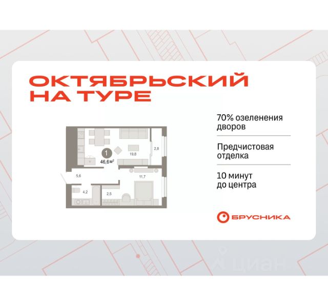 Квартира в счёт первоначального взноса по программе обмена. Квартира с кухней-гостиной и одной спальней в Октябрьском на Туре. Особенности планировки: вид во двор, предчистовая отделка. квартиры в нашей базе: ОКТ09-Ж3.2.1. Район Проект расположен на берегу реки, в одном из самых живописных и экологичных районов Тюмени. За последние годы облик района изменился. По соседству с индивидуальной застройкой выросли многоквартирные дома. При проектировании "Октябрьского на Туре" нашей приоритетной задачей стало сохранение природного ландшафта: мы постарались деликатно вписать в него современную архитектуру. Квартал удачно расположен с точки зрения дорожной инфраструктуры. На автомобиле путь до центра города составит 15 минут. Добраться до набережной и главных тюменских достопримечательностей можно и на общественном транспорте. В пешей доступности находится автобусная остановка. Проект По мастер-плану здесь будет восемь домов. Ядро застройки составляют замкнутые кварталы переменной этажности. Их высотность понижается по мере приближения к реке. На углах участка мы разместили башни-доминанты. Одной из достопримечательностей квартала станет парк на Туре — здесь появится зеленая зона протяженностью около 6 километров для пеших и велопрогулок. Смысловая ось квартала — широкая главная улица с высаженными вдоль неё высокими деревьями. Они создают тень и работают как шумо- и пылезащитные экраны. Это место сосредоточения основных пешеходных и транспортных потоков, на сторону которых мы ориентировали большинство коммерческих помещений. Отсюда жители могут свернуть на тихие соседские улицы и попасть на внутриквартальную площадь — ещё одну точку притяжения.Квартира в счёт первоначального взноса по программе обмена. #ZSDuVe
