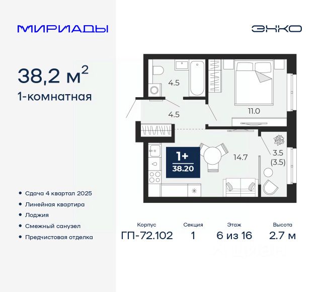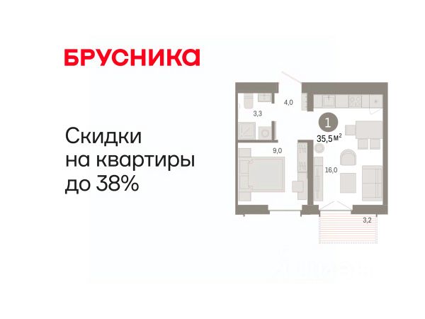 Продается 1-комн. квартира с предчистовой отделкой в ЖК "Республики 205" на 9 этаже. Общая площадь: 35.47 кв.м., жилая: 9 кв.м., площадь просторной кухни-гостиной: 16 кв.м. Все окна выходят на одну сторону. В квартире один балкон, один совмещенный санузел. Высота потолков 2.7 м. Купить квартиру можно с помощью программ покупки от застройщика Брусника: - ипотека по эксклюзивной ставке с помощью в получении положительного кредитного решения через сервис ипотечный брокер; - квартиры в рассрочку без процентов от застройщика Брусника; - обмен квартиры на новую. Получить одобрение ипотеки или рассрочку, а также осуществить обмен квартир можно онлайн. Дом монолитный, многоподъездный, переменной этажности, от 7 до 16 этажей. Квартира находится в 1-й секции высотой 9 этажей в корпусе 2. На этаже 10 квартир. В подъезде 1 грузовой лифт. Начало строительства - 1 квартал 2024 года. Окончание строительства - 1 квартал 2026 года. Оформление сделки по договору долевого участия. Район Проект расположен в границах улиц Пермякова, Энергетиков, Воровского и Республики. До центра города — 10 минут на машине. Рядом — автомобильная развязка на пересечении улиц Пермякова и Республики. В шаговой доступности есть школы, детские сады, поликлиники, крупный торговый центр, автовокзал и несколько скверов. Проект "Республики 205" — это проект комплексного развития территории, уникальный по своему наполнению. Переосмысляя бывшую территорию завода медицинского оборудования, мы создадим новое место силы — микрорайон, насыщенный деловой, развлекательной, рекреационной, игровой, образовательной и медицинской инфраструктурой. До каждого полезного сервиса здесь можно будет дойти за 15 минут. Локальными центрами "Республики 205" будут общественные пространства — скверы, парки, бульвары и площади. В границах нашего участка мы намерены разместить школу, рассчитанную на 1550 учеников, два детских сада на 300 мест и встроенный детский сад на 100 мест. В одном из цехов бывшего завода расположится креативный кластер "Кузница". Он станет площадкой для нескольких институций — галереи, лектория, книжного магазина-библиотеки, кинобара и точек креативного pop-up-ритейла. Пешеходные бульвары внутри района соединят между собой улицу ресторанов, детские и спортивные площадки, событийную площадь и летний кинотеатр. Идентификатор квартиры по базе застройщика: РСП-02-1-1. #2s8ga2