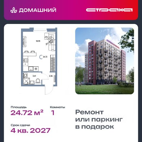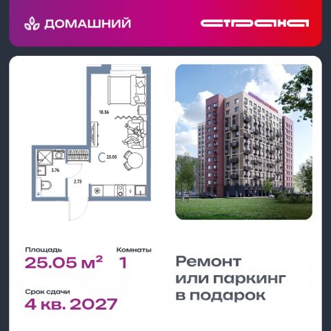 Новая квартира в ЖК "Домашний" напрямую от федеральной группы компаний "Страна Девелопмент". Финансовый партнер — банк "ДОМ.РФ". Продается 1комнатная квартира на 8 этаже от застройщика Страна Девелопмент. Площадь квартиры 25,05 кв. м. Жилой комплекс "Домашний" это первый цифровой район в Сибири, где жители заходят в парадные по Face ID, автомобили заезжают в паркинг по сканированию номера, а лифт автоматически спускается на первый этаж при открытии домофона. Даже во дворах — USB-розетки и беседки с подогревом. ПРЕИМУЩЕСТВА: -Школа, зеленый сквер и пешеходный бульвар прямо внутри квартала -Закрытые дворы у каждого дома для активного и спокойного отдыха -Охрана, видеонаблюдение 24/7 и доступ к камерам в мобильном приложении -Сквозные парадные с прозрачными входными группами, колясочными и велосипедными -Паркинг с въездом по считыванию номеров, системой контроля выбросов CO2, тележками для покупок и велопарковкой -Торговая галерея на первом этаже дома ОТДЕЛКА Квартиры сдаются с предчистовой отделкой: произведена разводка электричества и отопления, выполнена стяжка пола, стены выровнены "под маяк", установлены розетки, выключатели и радиаторы. ДИЗАЙНЕРСКАЯ ОТДЕЛКА При покупке квартиры в ЖК "Домашний" можно включить стоимость ремонта в ипотеку. Пять вариантов на выбор: Хлопковая нить, Серый шторм, Белый камень, Шалфей, Голубой вереск. СПОСОБЫ ПОКУПКИ: - ипотека - материнский капитал -100% оплата наличными Сотрудники "Страна Девелопмент" будут сопровождать вас на каждом этапе сделки, помогут получить одобрение по ипотеке или снизить ежемесячный платеж.