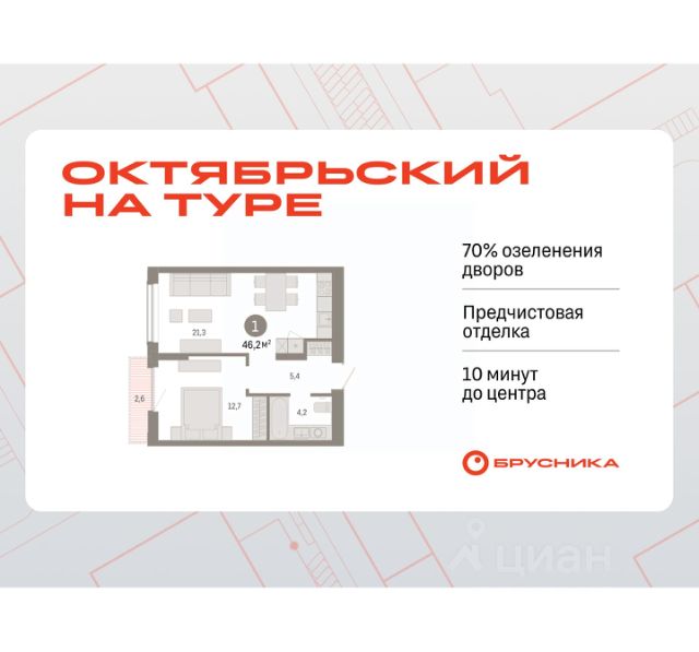 Предлагаем 1 - комнатную квартиру в доме ГП-1.3 общей площадью: 59,83 кв.м., с типом планировки: Кухня-гостиная. Комплекс расположен на территории бывшего завода "ДОК "Красный Октябрь. Это один из самых зеленых и чистых уголков города: здесь нет шумных магистралей и предприятий. До центра всего 2,5 км без мостов и путепроводов, а значит, вы можете спланировать время на дорогу с точностью до минуты. Дома стоят на высоком берегу Туры, на первой линии у воды. С территории ЖК хорошо просматриваются как панорама реки, так исторический центр, Мост Влюбленных и набережная. Проектирование ЖК выполнил архитектор Лазар Герич (Сербия). Из особых фишек проекта 9 лифтов на один дом, колясочные на каждом этаже, зоны ожидания и стойка консьержа в холле. Дворовая территория с игровыми и спортивными площадками - закрытая. Машино-места в комплексе бесплатные, общее число для дома первой очереди 642.