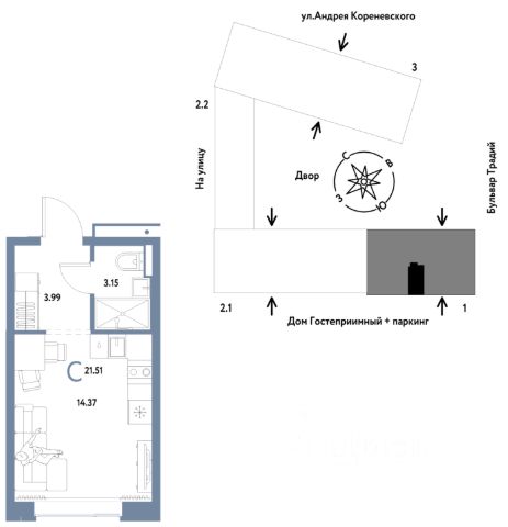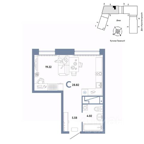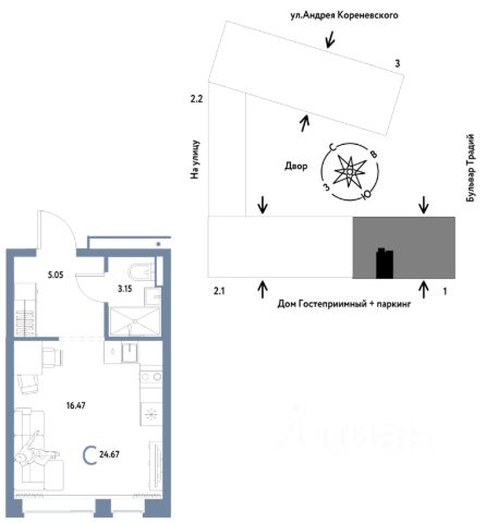 Продается студия в новом микрорайоне "Домашний" в районе Московского тракта рядом с ТРЦ "Колумб". Общая площадь квартиры 20,91 кв. м. Сдача — в 4 квартале 2024 года. О ПРОЕКТЕ Микрорайон "Домашний" — это 6 очередей строительства, 24 дома переменной этажности. Каждый дом уникальный. Внутри микрорайона появится огромный пешеходный бульвар — бульвар Традиций. Центром притяжения станут открытые пространства для отдыха жителей и гостей микрорайона, которые легко меняются под сезонные сценарии отдыха: новогодняя елка, ярмарки, кинопоказы и т.д. У каждого дома обустроен приватный двор с зонами для активного и спокойного отдыха. В активной зоне детские разновозрастные площадки с горками, песочницами и качелями, воркаут-зоны. В спокойной — скамейки, мини-амфитеатры, закрытые перголы. Уютной атмосферу сделает обильное озеленение и освещение "домашними" торшерами. ОТДЕЛКА Квартиры сдаются с предчистовой отделкой. Все грязные работы выполнены: произведена разводка электричества и отопления; выполнена стяжка пола; стены выровнены "под маяк". В квартире установлены розетки, выключатели и радиаторы. На входе — надежная стальная дверь. Вам остается только выбрать материалы и начать ремонт Доступна опция "Ремонт от застройщика". Стоимость можно включить в ипотеку. Вы можете заказать один из трех цветовых вариантов: светлый, натуральный или тёмный. В квартире внедрена технология "Умный дом". КУХНЯ С ТЕХНИКОЙ Теперь дополнительно к ремонту можно заказать кухню со встроенной техникой. Эргономику и функциональное наполнение разработали под каждую планировку. ПОЛНАЯ МЕБЛИРОВКА Больше не нужно тратить время даже на подбор, доставку и сборку мебели.Вы можете включить в стоимость квартиры с ремонтом полную меблировку. - Что входит в меблировку? - Кухня с техникой и сантехникой - Диван - Кровать - Шкаф в спальне - Шкаф в прихожей Цены на квартиры указаны без учета скидок. На консультации менеджер подскажет, какие акции действуют, и как получить одобрение по ипотеке с низкой ставкой. Более подробная информация по телефону.