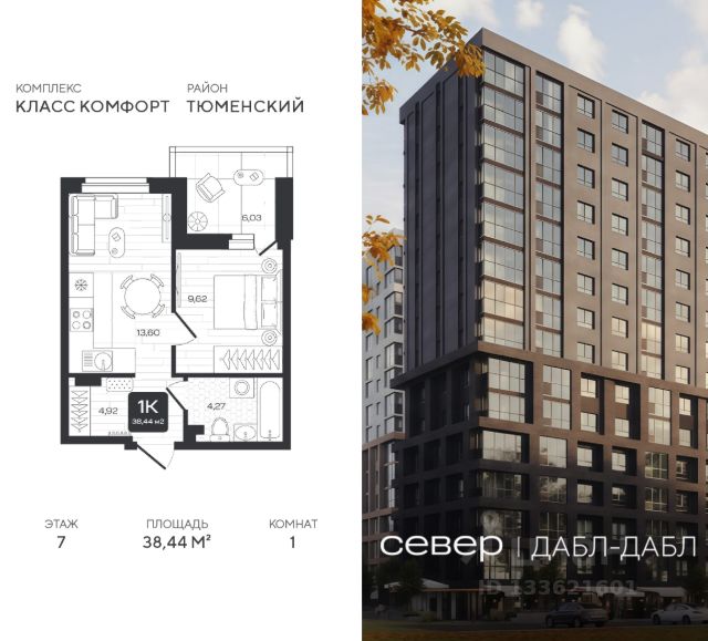 Продаётся квартира площадью 38.44 м2 в жилом комплексе "Дабл-Дабл". Квартира находится на 7 этаже, жилая площадь квартиры 9.62 м2, площадь просторной кухни — 13.60 м2. Среди особенностей планировки — изолированные комнаты с окнами на одну сторону, 1 совмещённый санузел. Срок сдачи — II кв. 2028 Жилой комплекс "Дабл-Дабл" — это: - проект комфорт-класса на Московском тракте - дома высотой 15 этажей - квартиры от 1-комнатных до 2-уровневых Окружение На границе жилого комплекса — живописный лес. Достаточно открыть окна, чтобы впустить в комнаты ароматы зелени, прохладу и чистый воздух. Благоустройство Юные жители оценят игровые площадки и воркаут-зоны. Любителям неспешных прогулок понравится 2-уровневый променад с панорамным видом и навесами. Лобби Помещения встречают дизайнерскими интерьерами с уютными лаунж-зонами, где удобно подождать курьера или просто сделать паузу перед возвращением домой. Колясочные Возвращайтесь налегке после прогулки с малышом — оставить коляску можно в специальном помещении на первом этаже. Кладовые Благодаря индивидуальным помещениям на техническом этаже сезонные и габаритные вещи будут на своём месте. 2-уровневые квартиры Просторная гостиная и кухня располагаются на первом этаже, спальня и кабинет — на втором. Почувствуйте, как жизнь выходит на новый уровень комфорта и приватности. Панорамное остекление Окна в пол наполняют комнаты светом и стирают границы между домом и природой. Встречайте рассветы или наслаждайтесь огнями вечернего города. Отделка Ровные стены, подготовленные полы и проведённые коммуникации — мы взяли на себя самые грязные и трудоёмкие этапы ремонта. Квартира станет чистым холстом, где легко создать интерьер в любом стиле.