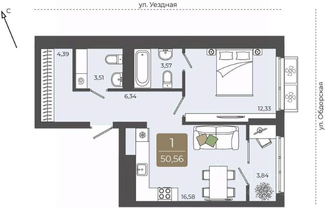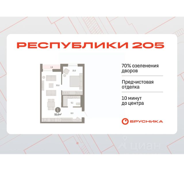 Квартира в счёт первоначального взноса по программе обмена. Информация по телефону, мы вам все подробно расскажем! Просторная 1-комн. квартира с предчистовой отделкой в Кварталы "На Минской" на 4 этаже. Общая площадь: 54.34 кв.м., жилая: 11 кв.м., площадь просторной кухни-гостиной: 28.6 кв.м. Все окна выходят на одну сторону. В квартире одна лоджия, один совмещенный санузел. Высота потолков 2.7 м. Дом монолитный, многоподъездный, переменной этажности, от 7 до 16 этажей. Квартира находится в 1-й секции высотой 16 этажей в корпусе 1. На этаже 8 квартир. В подъезде 2 пассажирских лифта. Окончание строительства - 4 квартал 2026 года. Оформление сделки по договору долевого участия. Квартира с кухней-гостиной и одной спальней в кварталах "На Минской". Особенности планировки: лоджия, предчистовая отделка. квартиры в нашей базе: МНС01-Ж1.4.5. В сердце города Кварталы "На Минской" находятся в самом центре. За десять минут можно дойти до площади 400-летия Тюмени и Большого Драматического театра, Тюменского индустриального и медицинского университетов, спортивного комплекса "Строймаш", ТРЦ "Гудвин" и "Премьер", Тюменского технопарка. Поблизости много детских садов, школ и поликлиник. Пространство разного опыта Создавая кварталы "На Минской" мы вдохновлялись Хакскими дворами в Берлине и улицей Давида Агмашенебели в Тбилиси. И первые и вторая — яркие разнообразные пространства, сформированные прогрессивными архитекторами и притягивающие городских интеллектуалов. Престижная недвижимость здесь соседствует с барами, ресторанами, креативными кластерами и бюро, дизайнерскими лавками. Полезные улицы Кварталы "На Минской" свяжет сеть променадов, автомобильных проездов и велодорожек. Уличный фронт проекта мы сформируем с помощью аллейной посадки деревьев. Они создадут тень для ресторанов и кафе на первых этажах, визуально отделят проезжую и пешеходную части, снизят объём пыли и уровень шума. Мы реализуем проект в районе с развитой базовой инфраструктурой. И поэтому тщательно подошли к программированию коммерции, посчитав, что её основная задача — "закрывать" более высокие потребности жителей. Здесь может появиться пекарня с вкусными круассанами, турагентство на случай, если захочется перезимовать в Сочи, массажный кабинет, ресторан, когда надоело есть дома и многое другое. #Z4f3vc 1-комнатная квартира с лоджией в Тюмени.