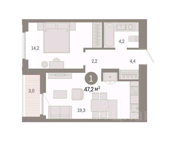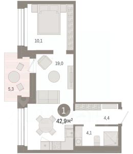 Квартира с кухней-гостиной и одной спальней в Октябрьском на Туре. Особенности планировки: вид во двор, предчистовая отделка, тёплая лоджия. квартиры в нашей базе: ОКТ09-Ж4.8.1. Район Проект расположен на берегу реки, в одном из самых живописных и экологичных районов Тюмени. За последние годы облик района изменился. По соседству с индивидуальной застройкой выросли многоквартирные дома. При проектировании "Октябрьского на Туре" нашей приоритетной задачей стало сохранение природного ландшафта: мы постарались деликатно вписать в него современную архитектуру. Квартал удачно расположен с точки зрения дорожной инфраструктуры. На автомобиле путь до центра города составит 15 минут. Добраться до набережной и главных тюменских достопримечательностей можно и на общественном транспорте. В пешей доступности находится автобусная остановка. Проект По мастер-плану здесь будет восемь домов. Ядро застройки составляют замкнутые кварталы переменной этажности. Их высотность понижается по мере приближения к реке. На углах участка мы разместили башни-доминанты. Одной из достопримечательностей квартала станет парк на Туре — здесь появится зеленая зона протяженностью около 6 километров для пеших и велопрогулок. Смысловая ось квартала — широкая главная улица с высаженными вдоль неё высокими деревьями. Они создают тень и работают как шумо- и пылезащитные экраны. Это место сосредоточения основных пешеходных и транспортных потоков, на сторону которых мы ориентировали большинство коммерческих помещений. Отсюда жители могут свернуть на тихие соседские улицы и попасть на внутриквартальную площадь — ещё одну точку притяжения. #ZmDV73 1-комнатная квартира с лоджией в Тюмени.