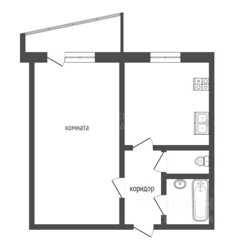 • Гостиная- комната — 19,5 м² (!больше, чем у большинства аналогов — 18 м²)