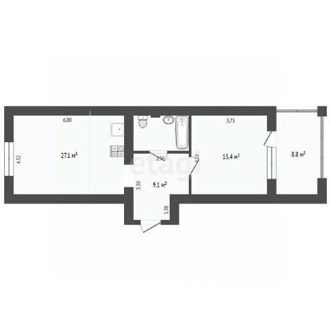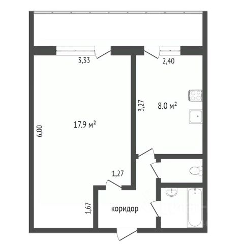 1-комн. квартира от застройщика с предчистовой отделкой в ЖК "Дом у озера" на 6 этаже. Общая площадь: 52.8 кв.м., жилая: 12.4 кв.м., площадь просторной кухни-гостиной: 24.2 кв.м. Все окна выходят на одну сторону. В квартире один балкон, один совмещенный и один раздельный санузел. Высота потолков 2.7 м.