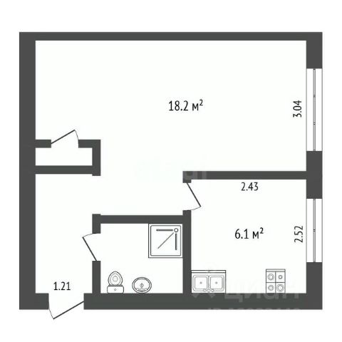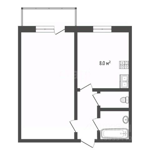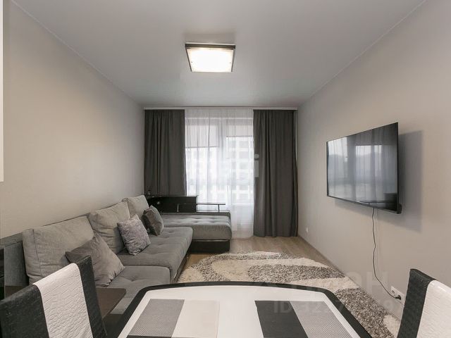 В квартире просторная кухня-гостинная, с выходом на лоджию; спальная комната так же с выходом на лоджию; холл со встроенным шкафом-купе; совмещённый с/у.