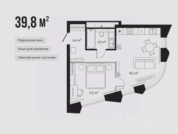 Площадь: 44 м²