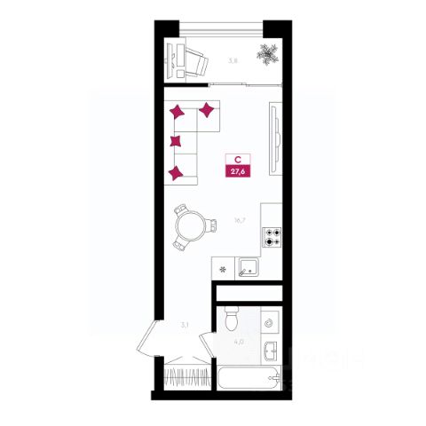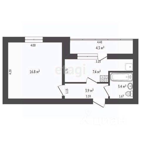 Прекрасно подойдет для проживания одного человека, молодой семьи или под сдачу.