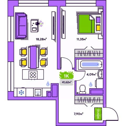 19-этажная архитектурная доминанта с эффектом паруса и камерная секция: французские балконы, сити-хаусы на 1-м этаже, 9 этажей в доме. Уступчатая структура формирует динамичный силуэт — новый акцент ул. Полевая. Металлические балконы создают градиент от тёмного к светлому, большие окна — панорамные виды на город.