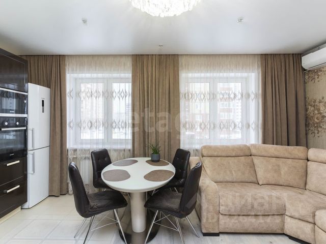 В квартире свежий косметический ремонт. Стены ровные, поклеены обоями, на полу линолеум, натяжные потолки с точечным освещением, теплый пол в санузле.
