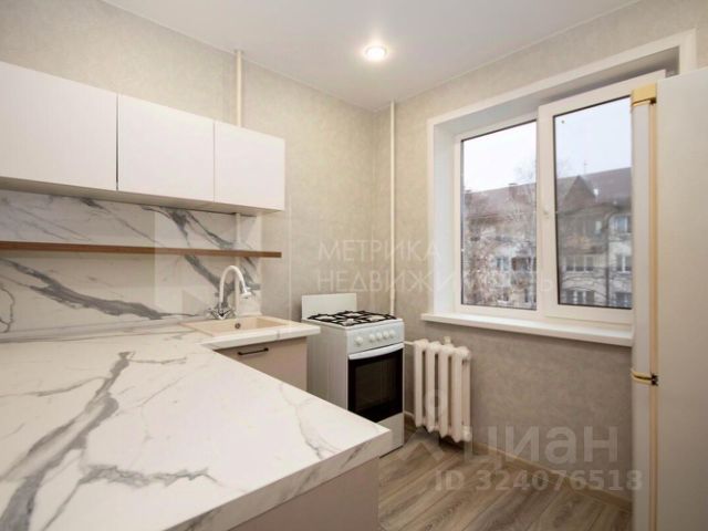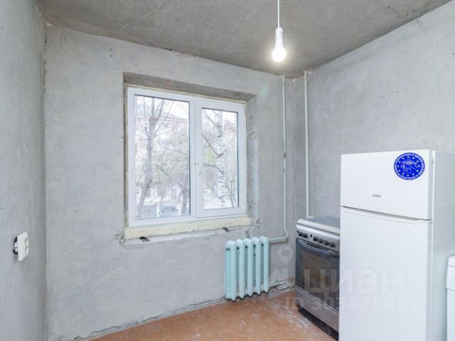 Однокомнатная угловая квартира площадью 31,7 кв.м на четвертом этаже пятиэтажного дома. Жилая площадь 19,2 кв.м. Кухня не большая, но вместительная 5,7 кв.м. Большая комната площадью 19,2 кв.м с двумя окнами и выходом на застекленный балкон. Высота потолков 2,65 м. Окна выходят во двор и на улицу.
