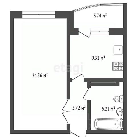 Просторная 1-комнатная квартира площадью 45,5 кв.м на 8 этаже девятиэтажного дома. Жилая площадь 24,4 кв.м. Просторная кухня-столовая 13,2 кв.м, большая комната правильной формы с выходом на балкон площадью 24,4 кв.м, санузел раздельный, высота потолков 2,5 м, окна выходят во двор.