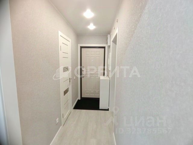 Современный ремонт: на стенах — обои по всей площади, установлены хорошие межкомнатные двери и натяжные потолки с точечными светильниками, на полу ламинат, санузел в плитке. Вход в комнату из кухни через прямоугольную арку, а на кухню- через прямоугольную полуарку.