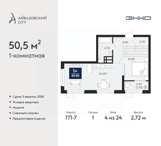 1-комн. квартира с предчистовой отделкой в ЖК "Айвазовский City" на 2 этаже. Общая площадь: 47 кв.м., жилая: 10.6 кв.м., площадь просторной кухни-столовой: 24.1 кв.м. Все окна выходят на одну сторону. В квартире один совмещенный санузел. Высота потолков 2.7 м. Дом монолитный, многоподъездный, переменной этажности, от 14 до 24 этажей. Квартира находится в 5-й секции высотой 14 этажей в корпусе ГП-8. На этаже 5 квартир. В подъезде 1 пассажирский и 1 грузовой лифт. Окончание строительства - 3 квартал 2026 года. Оформление сделки по договору долевого участия. Новый жилой район располагается в живописном месте на берегу Туры в центральной части города. Принципиально новое пространство для жизни в центре современного города для тех, чьи мечты сбываются, кто нацелен на постоянный рост, перемены к лучшему для себя и своих близких. Каждая деталь Айвазовский City вдохновляет и заряжает на новые свершения: авторская архитектура, сбалансированная продуманная инфраструктура, дизайнерские дворы со спортивными и детскими площадками, парковые зоны с фонтанами, водный канал, украшающий центральный прогулочный маршрут района и многое другое. В 2019 года проект стал лауреатом престижной премии Urban Awards 2019 в номинации "Лучший строящийся региональный жилой комплекс бизнес-класса". Главная особенность Айвазовский City - соседство разных архитектурных школ в рамках одного дома. Изысканная классика, выразительная эклектика и оригинальный модерн - жить в одном из таких домов настоящий повод для гордости. Айвазовский City это идеальное сочетание комфорта, технологий и развитой инфраструктуры. Вход в подъезд возможен с улицы и со двора. Отправляясь на работу или за покупками, жители могут выйти с внешней стороны дома, а для прогулки с ребенком со стороны двора. Экологически чистые материалы и энергосберегающие технологии, качественное освещение общественных зон, видеонаблюдение по всей территории жилого района (в том числе в подъездах, лифтах и в подземном паркинге), закрытые дворы с доступом только для жителей Айвазовский City. Часть домов в Айвазовский City будут оснащены подземным паркингом. Востребованный в нашем климатическом поясе формат хранения автомобилей защитит собственность владельца в любое время года. Аккредитация в банках: ПАО Банк "ВТБ", "Сбербанк России", ОАО "Альфа-Банк", ПАО "Газпромбанк", ПАО Банк "ФК Открытие" и других. #Z4Ae0M Продается 1-комнатная квартира на улице Пожарных и Спасателей в городе Тюмень.