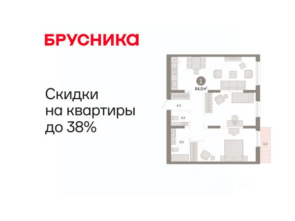 Эксклюзивные ипотечные условия. Квартира в рассрочку без процентов от застройщика. Обмен квартиры на новую. Предложение от застройщика. Квартира в счёт первоначального взноса по программе обмена. Дом будет сдан в 4 квартале 2025 года. Информация по телефону, мы вам все подробно расскажем! 1-комн. квартира с предчистовой отделкой в ЖК "Республики 205" на 4 этаже. Общая площадь: 84.02 кв.м., жилая: 40 кв.м., площадь просторной кухни-гостиной: 10 кв.м. Все окна выходят на одну сторону. В квартире один балкон, один совмещенный санузел. Высота потолков 2.6 м. Купить квартиру можно с помощью программ покупки от застройщика Брусника: - ипотека по эксклюзивной ставке с помощью в получении положительного кредитного решения через сервис ипотечный брокер; - квартиры в рассрочку без процентов от застройщика Брусника; - обмен квартиры на новую. Получить одобрение ипотеки или рассрочку, а также осуществить обмен квартир можно онлайн. Дом монолитный, многоподъездный, переменной этажности, от 9 до 17 этажей. Квартира находится в 1-й секции высотой 17 этажей в корпусе 1. На этаже 7 квартир. В подъезде 1 пассажирский и 1 грузовой лифт. Начало строительства - 2 квартал 2023 года. Окончание строительства - 4 квартал 2025 года. Оформление сделки по договору долевого участия. Район Проект расположен в границах улиц Пермякова, Энергетиков, Воровского и Республики. До центра города — 10 минут на машине. Рядом — автомобильная развязка на пересечении улиц Пермякова и Республики. В шаговой доступности есть школы, детские сады, поликлиники, крупный торговый центр, автовокзал и несколько скверов. Проект "Республики 205" — это проект комплексного развития территории, уникальный по своему наполнению. Переосмысляя бывшую территорию завода медицинского оборудования, мы создадим новое место силы — микрорайон, насыщенный деловой, развлекательной, рекреационной, игровой, образовательной и медицинской инфраструктурой. До каждого полезного сервиса здесь можно будет дойти за 15 минут. Локальными центрами "Республики 205" будут общественные пространства — скверы, парки, бульвары и площади. В границах нашего участка мы намерены разместить школу, рассчитанную на 1550 учеников, два детских сада на 300 мест и встроенный детский сад на 100 мест. В одном из цехов бывшего завода расположится креативный кластер "Кузница". Он станет площадкой для нескольких институций — галереи, лектория, книжного магазина-библиотеки, кинобара и точек креативного pop-up-ритейла. Пешеходные бульвары внутри района соединят между собой улицу ресторанов, детские и спортивные площадки, событийную площадь и летний кинотеатр. Идентификатор квартиры по базе застройщика: МЕД01-01-1-1. #2l9I9A Продам 1-комнатную квартиру на улице Республики в городе Тюмень.