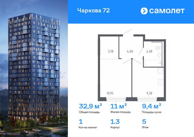 Строим кварталы для жизни с заботой о будущем. Предлагается 1-комнатная квартира комфорт-класса 29,5 кв.м в корпусе 1.2 на 5 этаже, в ЖК "Чаркова 72" Квартира с чистовой отделкой. Доступность дополнительных опций уточняйте у застройщика. Приобрести квартиру возможно по специальным акциям от застройщика, с текущими условиями акций можно ознакомиться в блоке "Акций". Цена динамическая и может отличаться, уточняйте актуальность у застройщика. Идеальное сочетание городского комфорта и размеренной жизни — квартал "Чаркова 72" на северо-востоке города. В дизайне 17-24-этажных домов с панорамными балконами нашли отражение нотки сибирской природы. От "Чаркова 72" удобно добираться до центра города — всего 17 минут пути. А в 2 минутах от дома находится Тобольский тракт. Для семейного отдыха отлично подойдет парк Гагарина — он находится в 7 минутах от квартала. В закрытых дворах тихо и уютно — все авто остались на одном из 4 многоуровневых паркингов, которые находятся за территорией квартала. Можно спокойно гулять по бульвару и заниматься йогой на спортивной площадке. На первых этажах домов — кафе и магазины. Рядом с проектом — детские сады и школы, городская поликлиника и МФЦ. Во всех квартирах есть выводы под кондиционеры, на подземных этажах — индивидуальные кладовые, на первых — места для хранения велосипедов и колясок. В квартирах можно выбрать варианты отделки: чистовая, черновая и улучшенная из материалов повышенного класса.