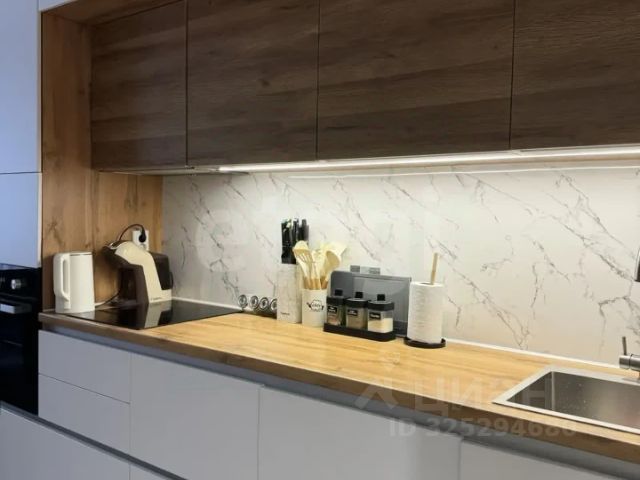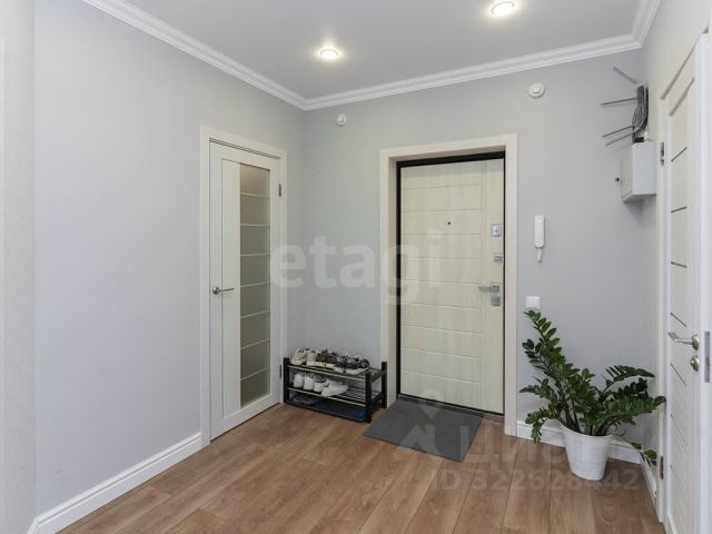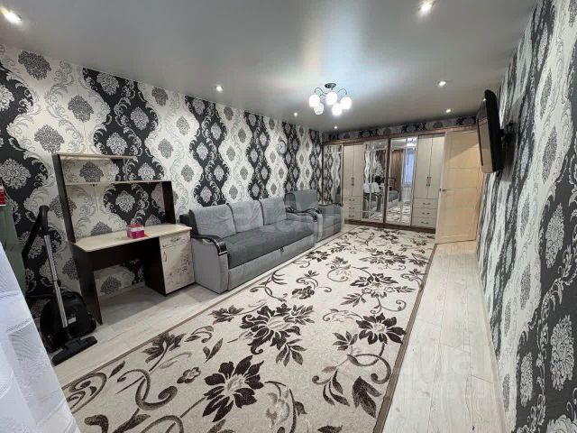 В квартире свежий косметический ремонт. Стены ровные, поклеены обоями, на полу линолеум, натяжные потолки с точечным освещением, теплый пол в санузле.