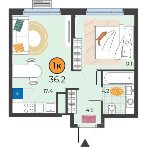 Большая кухня-гостиная с двумя окнами, здесь можно принимать гостей. Изолированная спальня с выходом на балкон и совмещенный санузел. В санузле установлены фильтры очистки воды и бойлер.