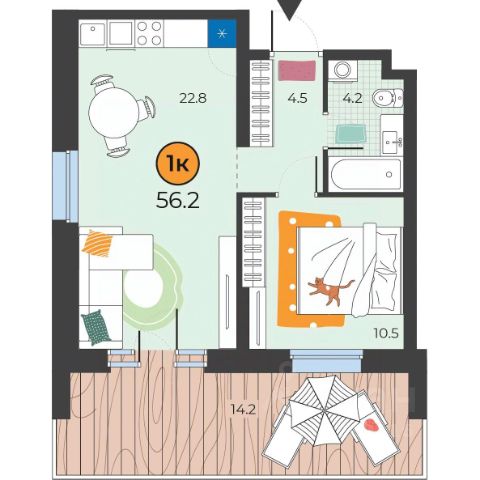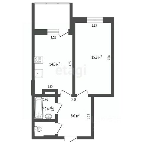 планировкой: общая площадь 58,3 кв.м. и плюсом к данной площади