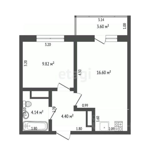 В квартире очень удобная и многофункциональная планировка: кухня-гостиная (15,5 м²), спальня (14,5 м²), прихожая (5,5 м²), санузел (4,5 м²) и утепленная лоджия (3,5 м²).