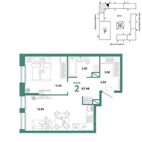 4-этажный дом. Архитекторы проекта: итальянское архитектурное бюро R+S. В квартирах: панорамные окна высотой от 2,4 м. Кладовая в подарок с каждой квартирой. На первых этажах зданий расположены квартиры с террасами, на верхних этажах — видовые пентхаусы. Система умного доступа в подъезды. В лобби: комнаты для хранения колясок и велосипедов и даже мойки для лап домашних питомцев.