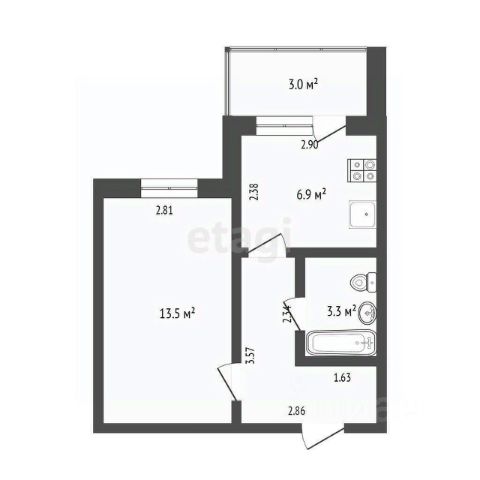 Хорошая квадратура 36,4 м2 (данные ЕГРН, такая площадь указана в документах)