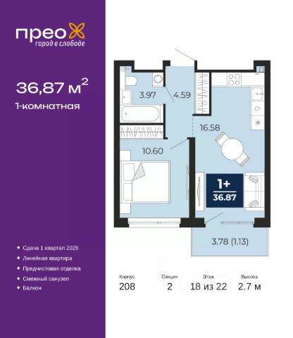 Торопитесь оформить бронирование по этой цене! Предложение ограничено! Стоимость квартиры указана со скидкой, ваша экономия составит 305,250 RUB. По всем вопросам обращайтесь в офис продаж, мы вам все подробно расскажем! 1-комн. квартира от застройщика с предчистовой отделкой в ЖК "Прео" на 16 этаже. Общая площадь: 41.23 кв.м., жилая: 17.67 кв.м., площадь просторной кухни-столовой: 12.3 кв.м. Все окна выходят на одну сторону. В квартире один балкон, один совмещенный санузел. Высота потолков 2.7 м. Дом монолитный, черырехподъездный, переменной этажности, от 14 до 21 этажей. Квартира находится во 2-й секции высотой 21 этаж в корпусе 211. На этаже 10 квартир. В подъезде 1 пассажирский и 1 грузовой лифт. Окончание строительства - 4 квартал 2026 года. Оформление сделки по договору долевого участия. Преображенский — один из самых привлекательных районов для жизни! Это полностью самостоятельный жилой район с точки зрения инфраструктуры. Преображенский находится между Московским и Червишевским трактами в квартале улиц Закалужская — Вьюжная — Александра Протозанова. Не нужно ждать, когда появится инфраструктура — переезжайте на всё готовое. Вблизи расположены действующие школа и детский сад. В этом году откроется еще один сад, а в следующем году — школа. По соседству с Преображенским запланировано строительство городского парка "Комарово" площадью 38 гектар. За 10 минут можно доехать на автомобиле до крупных ТРЦ: "Лента", "Кристалл", "Леруа Мерлен", "Метро" и "Ашан". С 2018 года в районе открыт Соседский центр — пространство, созданное для формирования добрососедской среды, совместного досуга, общения и реализации соседских инициатив. Здесь проходят встречи соседей, а также сами жители района организовывают мероприятия. Организатором такого события может стать любой желающий. В квартирах выполнена качественная предчистовая отделка. Гладкие стены с финишным выравниванием по маякам. Ровный потолок для установки натяжного потолка. Установлены пятикамерные окна с двойным стеклопакетом (3 стекла). Дизайнерские холлы с видеонаблюдением, безбарьерным и прозрачным входом всегда светло и спокойно. На первом этаже есть просторные колясочные, где все жители могут оставлять свои коляски и велосипеды. В Преображенском есть всё, что нужно для активного отдыха и занятий спортом. Мы сделали большое футбольное поле с безопасным покрытием. Также установили хоккейный корт, который оборудован по всем необходимым стандартам. Во дворах можно делать упражнения на специальных площадках с турниками. Весь район мы обустроили велодорожками, которые связаны в единый маршрут. У нас есть сухие фонтаны, бьющие из земли, деревья, веревки, сетки, скалодром, газон, песок и резинка — осталось просто дать своему ребенку право на свободную игру. По-настоящему хорошие дворы — это те, которые дети предпочитают соцсетям и телевизору. Аккредитация в банках: ПАО Банк "ВТБ", ПАО "Банк Уралсиб", ОАО "Альфа-Банк", ПАО "Газпромбанк", "Сбербанк России" и других. #ZSO