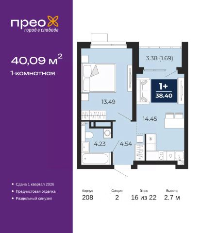Успейте оформить бронирование по акционной цене, срок предложения ограничен! Стоимость квартиры указана со скидкой, ваша экономия составит 320,450 руб. Звоните, наши менеджеры вам все расскажут. 1-комн. квартира в ЖК "Прео" на 8 этаже. Общая площадь: 43.96 кв.м. Высота потолков 2.7 м. Квартира находится в корпусе 215. Дом монолитный, одноподъездный, высотой 20 этажей. На этаже 8 квартир. В подъезде 1 пассажирский и 1 грузовой лифт. Окончание строительства - 4 квартал 2027 года. Оформление сделки по договору долевого участия. Преображенский — один из самых привлекательных районов для жизни! Это полностью самостоятельный жилой район с точки зрения инфраструктуры. Преображенский находится между Московским и Червишевским трактами в квартале улиц Закалужская — Вьюжная — Александра Протозанова. Не нужно ждать, когда появится инфраструктура — переезжайте на всё готовое. Вблизи расположены действующие школа и детский сад. В этом году откроется еще один сад, а в следующем году — школа. По соседству с Преображенским запланировано строительство городского парка "Комарово" площадью 38 гектар. За 10 минут можно доехать на автомобиле до крупных ТРЦ: "Лента", "Кристалл", "Леруа Мерлен", "Метро" и "Ашан". С 2018 года в районе открыт Соседский центр — пространство, созданное для формирования добрососедской среды, совместного досуга, общения и реализации соседских инициатив. Здесь проходят встречи соседей, а также сами жители района организовывают мероприятия. Организатором такого события может стать любой желающий. В квартирах выполнена качественная предчистовая отделка. Гладкие стены с финишным выравниванием по маякам. Ровный потолок для установки натяжного потолка. Установлены пятикамерные окна с двойным стеклопакетом (3 стекла). Дизайнерские холлы с видеонаблюдением, безбарьерным и прозрачным входом всегда светло и спокойно. На первом этаже есть просторные колясочные, где все жители могут оставлять свои коляски и велосипеды. В Преображенском есть всё, что нужно для активного отдыха и занятий спортом. Мы сделали большое футбольное поле с безопасным покрытием. Также установили хоккейный корт, который оборудован по всем необходимым стандартам. Во дворах можно делать упражнения на специальных площадках с турниками. Весь район мы обустроили велодорожками, которые связаны в единый маршрут. У нас есть сухие фонтаны, бьющие из земли, деревья, веревки, сетки, скалодром, газон, песок и резинка — осталось просто дать своему ребенку право на свободную игру. По-настоящему хорошие дворы — это те, которые дети предпочитают соцсетям и телевизору. Аккредитация в банках: "Сбербанк России", ПАО Банк "ВТБ", ОАО "Альфа-Банк", ПАО "Банк Уралсиб", ПАО "Газпромбанк" и других. #2mdEWE