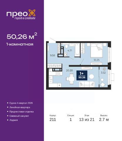 Однокомнатная квартира с предчистовой отделкой в ЖК "Прео" на 7 этаже. Общая площадь: 43.88 кв.м., жилая: 15.41 кв.м., площадь просторной кухни-столовой: 14.98 кв.м. Все окна выходят на одну сторону. В квартире одна лоджия, один совмещенный санузел. Высота потолков 2.7 м. Дом монолитный, черырехподъездный, переменной этажности, от 14 до 21 этажей. Квартира находится во 2-й секции высотой 21 этаж в корпусе 211. На этаже 10 квартир. В подъезде 1 пассажирский и 1 грузовой лифт. Окончание строительства - 4 квартал 2026 года. Оформление сделки по договору долевого участия. Преображенский — один из самых привлекательных районов для жизни! Это полностью самостоятельный жилой район с точки зрения инфраструктуры. Преображенский находится между Московским и Червишевским трактами в квартале улиц Закалужская — Вьюжная — Александра Протозанова. Не нужно ждать, когда появится инфраструктура — переезжайте на всё готовое. Вблизи расположены действующие школа и детский сад. В этом году откроется еще один сад, а в следующем году — школа. По соседству с Преображенским запланировано строительство городского парка "Комарово" площадью 38 гектар. За 10 минут можно доехать на автомобиле до крупных ТРЦ: "Лента", "Кристалл", "Леруа Мерлен", "Метро" и "Ашан". С 2018 года в районе открыт Соседский центр — пространство, созданное для формирования добрососедской среды, совместного досуга, общения и реализации соседских инициатив. Здесь проходят встречи соседей, а также сами жители района организовывают мероприятия. Организатором такого события может стать любой желающий. В квартирах выполнена качественная предчистовая отделка. Гладкие стены с финишным выравниванием по маякам. Ровный потолок для установки натяжного потолка. Установлены пятикамерные окна с двойным стеклопакетом (3 стекла). Дизайнерские холлы с видеонаблюдением, безбарьерным и прозрачным входом всегда светло и спокойно. На первом этаже есть просторные колясочные, где все жители могут оставлять свои коляски и велосипеды. В Преображенском есть всё, что нужно для активного отдыха и занятий спортом. Мы сделали большое футбольное поле с безопасным покрытием. Также установили хоккейный корт, который оборудован по всем необходимым стандартам. Во дворах можно делать упражнения на специальных площадках с турниками. Весь район мы обустроили велодорожками, которые связаны в единый маршрут. У нас есть сухие фонтаны, бьющие из земли, деревья, веревки, сетки, скалодром, газон, песок и резинка — осталось просто дать своему ребенку право на свободную игру. По-настоящему хорошие дворы — это те, которые дети предпочитают соцсетям и телевизору. Аккредитация в банках: ПАО "Газпромбанк", ПАО "Банк Уралсиб", "Сбербанк России", ПАО Банк "ВТБ", ОАО "Альфа-Банк" и других. #Z7ObA4